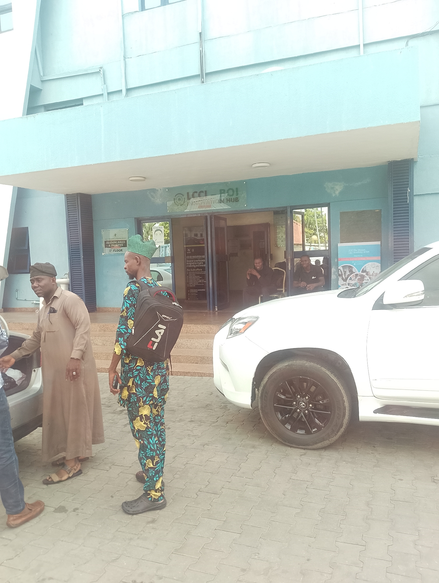 Here's a detailed description of the image: **Location and Setting:** The image appears to be taken in front of a building identified as the "LCCI-POI Innovation Hub, 4th Floor." Signs also indicate…read more