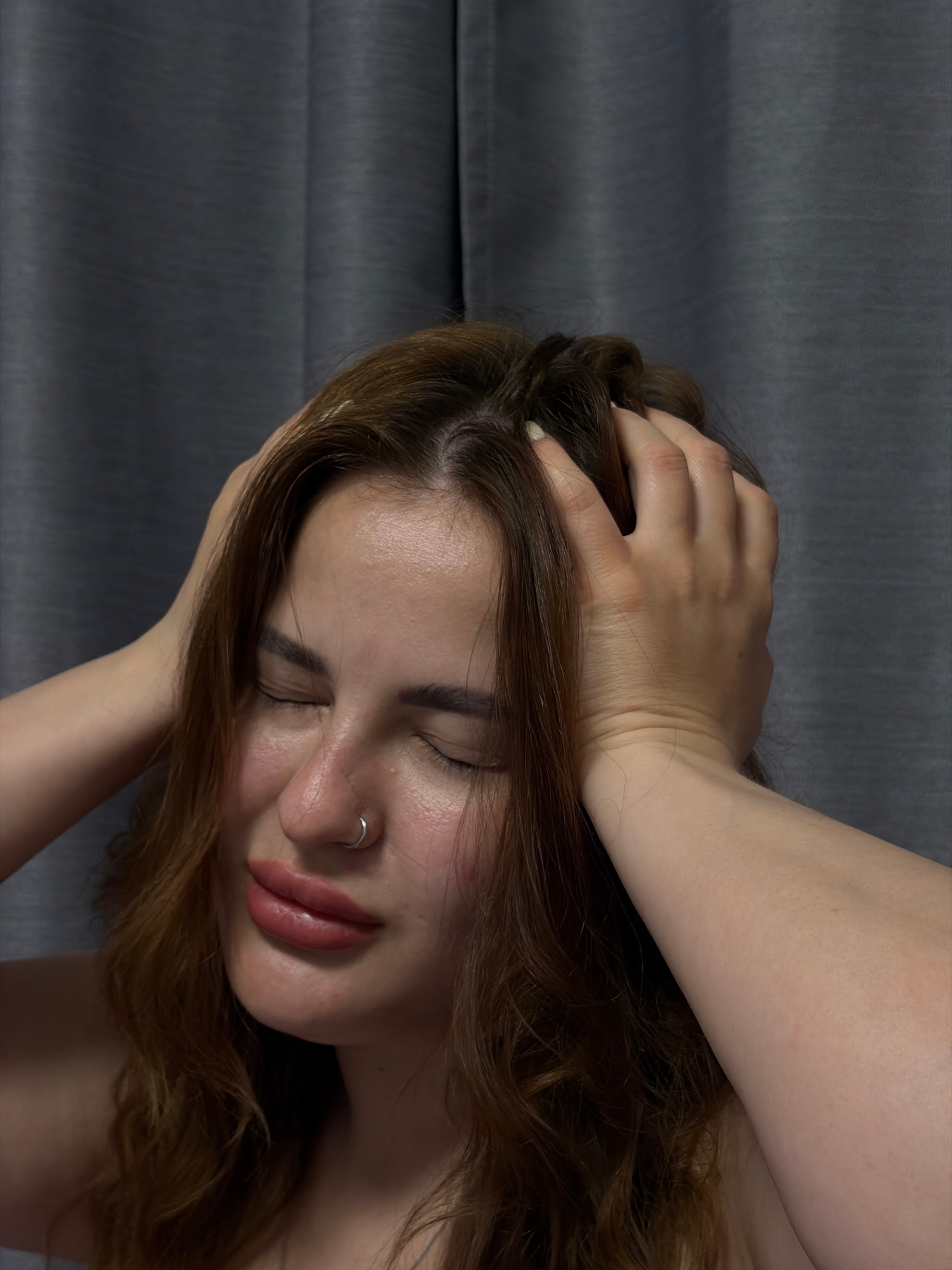 An intimate, tilted close-up shot captures a young woman, likely in Krasnodar, Russia, with her eyes closed, suggesting a moment of intense emotion, contemplation, or sensual pleasure. Her head is til…read more