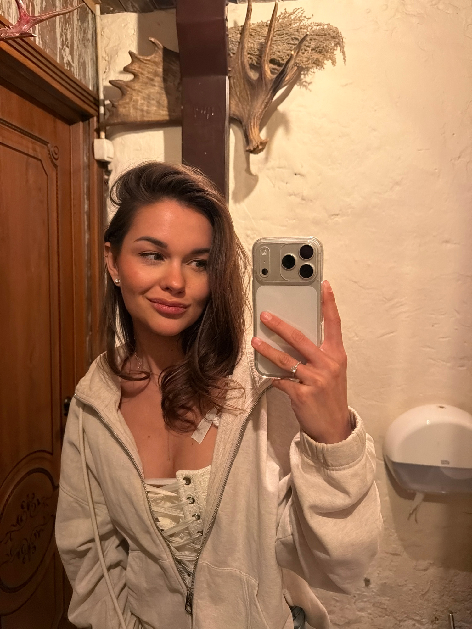 A young woman with medium brown, wavy hair and a subtle smile is captured in a selfie taken indoors, likely in Krasnoyarsk, Russia. She holds a silver or light grey smartphone in a clear case with her…read more