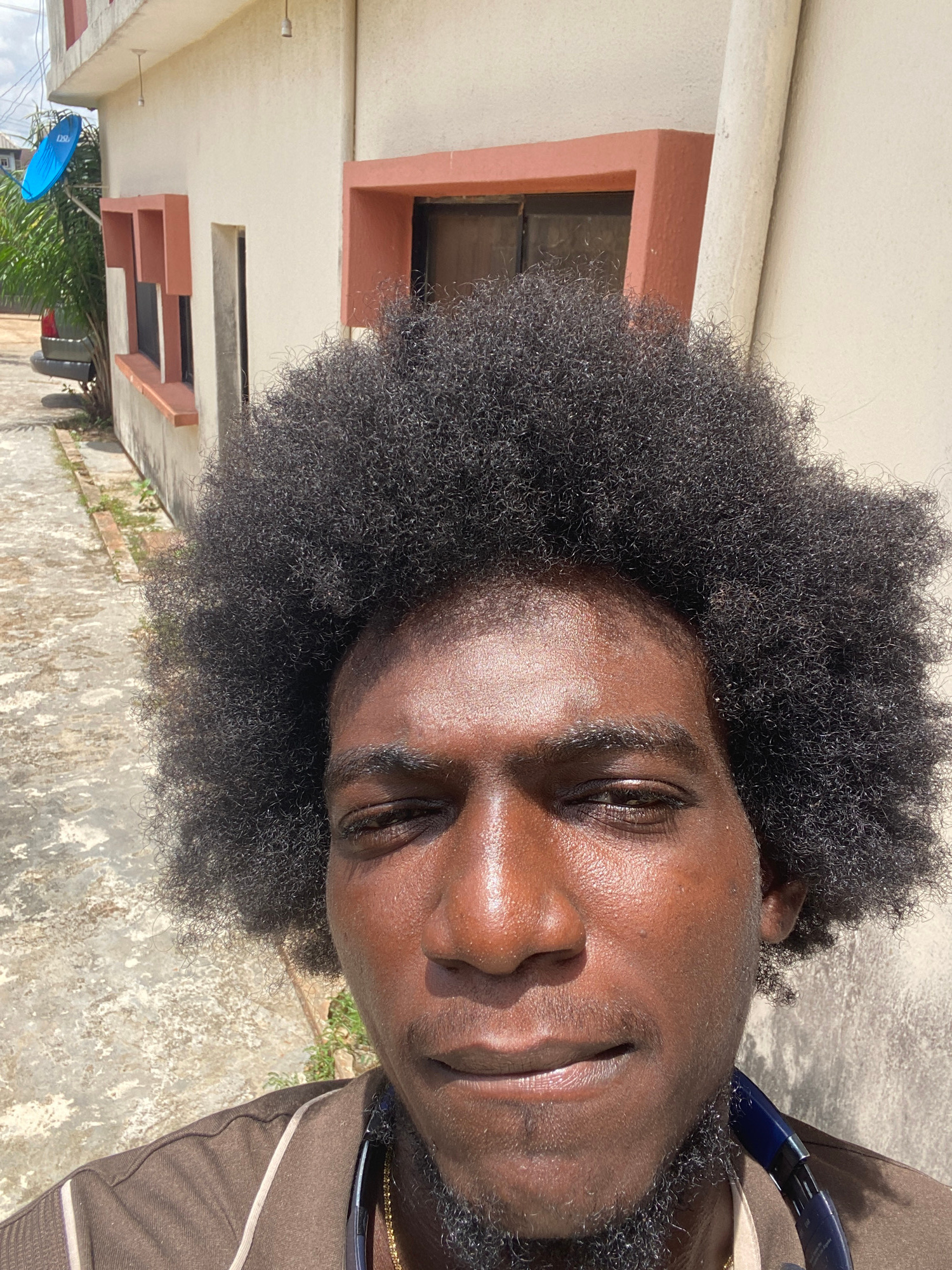 A close-up, slightly rotated shot captures a Black man with a short beard and dark, Afro-textured hair. He is facing the camera and has a slight smile. He is wearing a brown shirt with white trim. Theβ¦read more