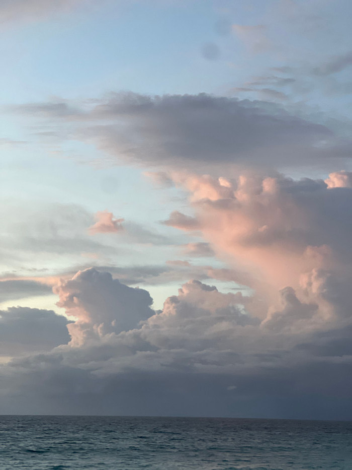 The image displays a seascape observed from Pecatu, Indonesia. The lower approximately 15-20% of the frame is occupied by the ocean, characterized by a choppy surface with visible ripples and waves, a…read more