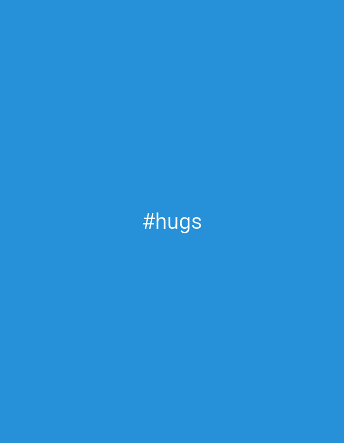 The image displays a solid, uniform blue background. Centered horizontally and slightly below the vertical midpoint of the frame, white text reads "#hugs" in a sans-serif typeface. No other subjects,…read more