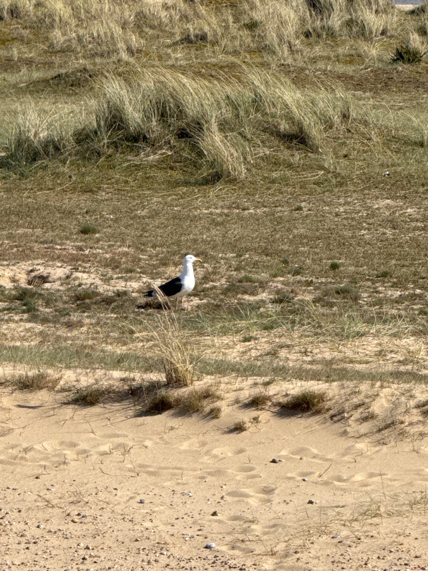 The image shows an aerial view of a beach in Great Yarmouth, United Kingdom. The left side of the image shows a grassy sand dune, with dense green and brown grasses. The right side shows a sandy beachβ¦read more