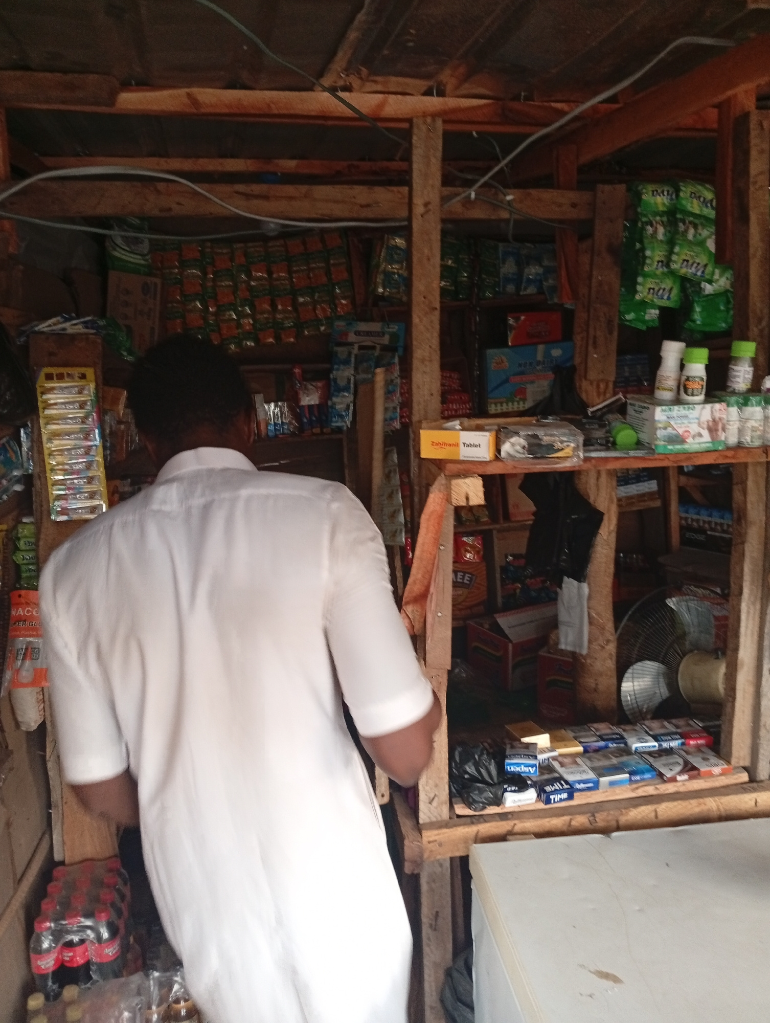 Here's a detailed description of the image: **Location:** The image appears to be taken inside a small shop or kiosk. While the prompt states Adankolo, Nigeria, this cannot be confirmed from the imag…read more