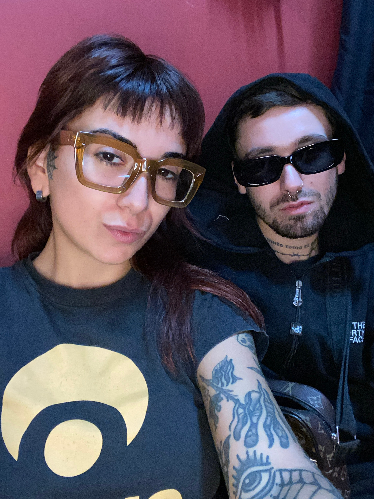 Two people are lying on a red surface, possibly a bed. The person on the right is a man wearing a black hooded jacket with the logo "THE NORTH FACE" visible on the zipper. He has dark hair, a beard, a…read more