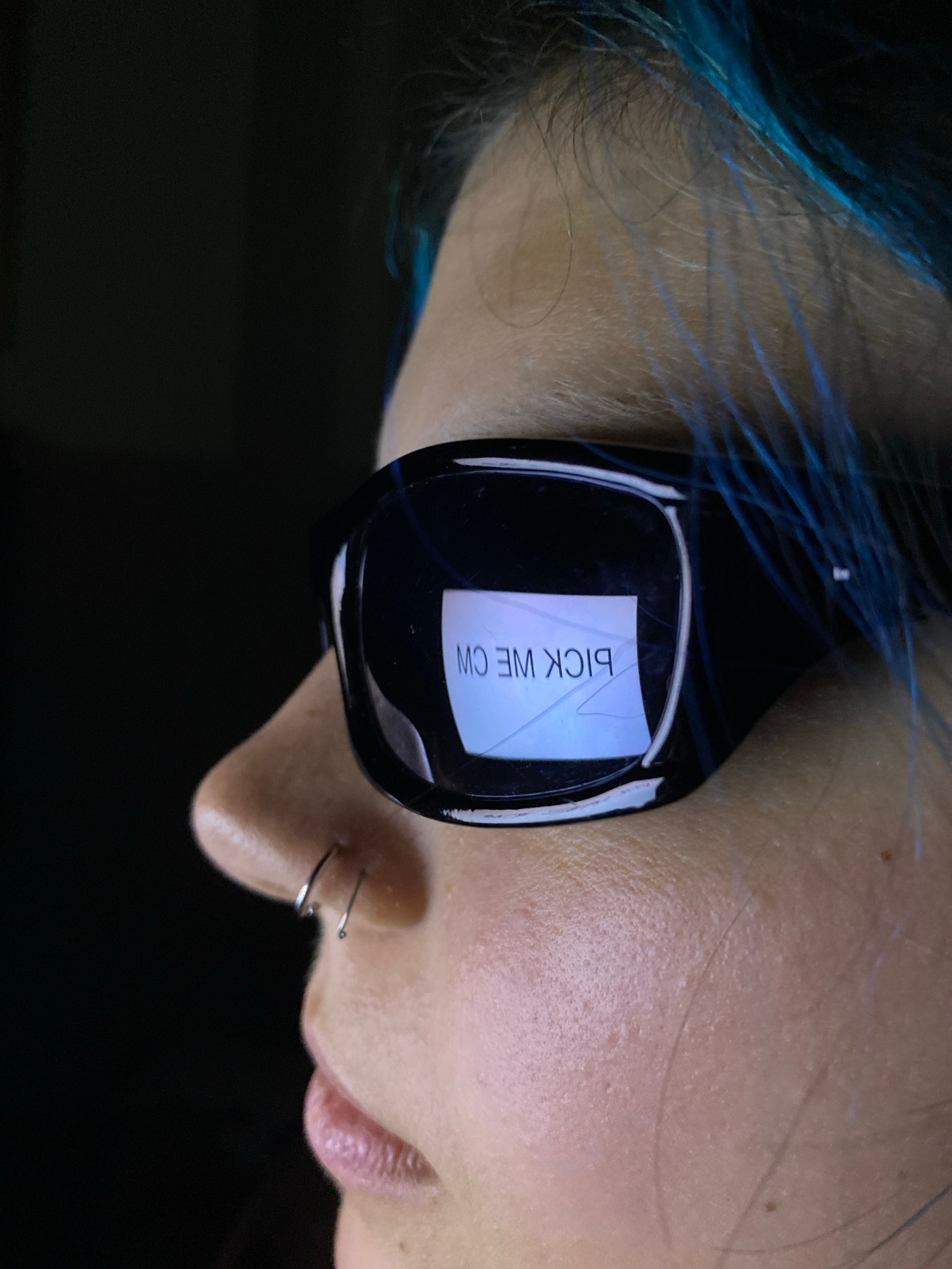 A close-up image shows a person wearing a black fitness tracker on their wrist. The screen of the tracker displays the text "BICK WE CW" (likely meant to say "Quick Workout" or similar), which is mirr…read more