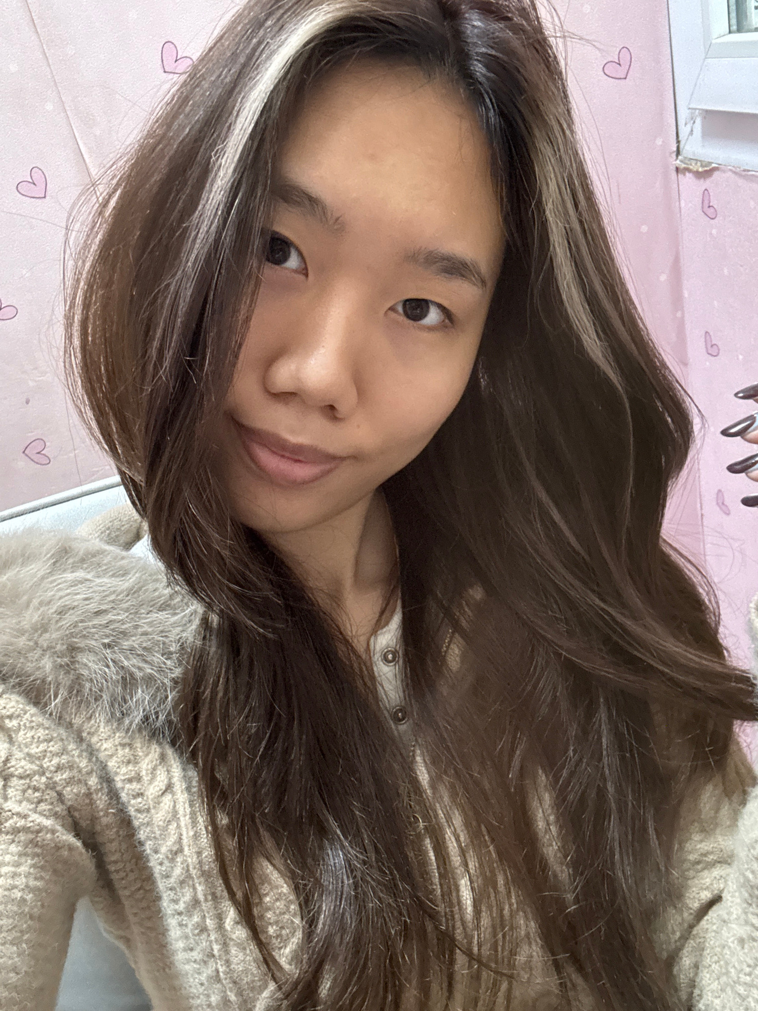 The scene is an interior setting in Shapingba District, China, featuring a single East Asian female subject captured in a mid-shot. The female has long, dark brown hair with wavy texture and prominent…read more
