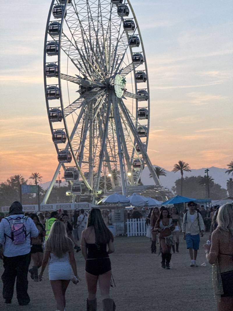 The image captures a large Ferris wheel as the focal point of an event. The Ferris wheel is towering and illuminated, with a design at its center, possibly a logo or symbol. Below it, a crowd of peopl…read more
