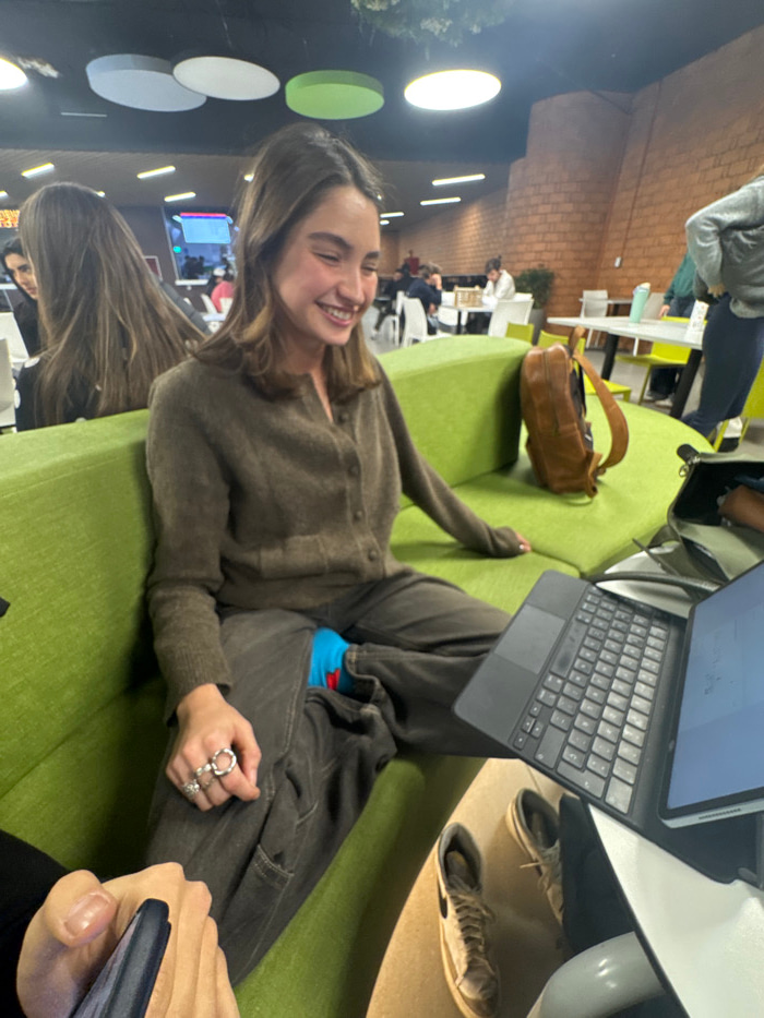 The image portrays an indoor common area, likely a university or public space, situated within Mexico City, Mexico. The precise location is not visually identifiable. In the mid-ground, a young female…read more