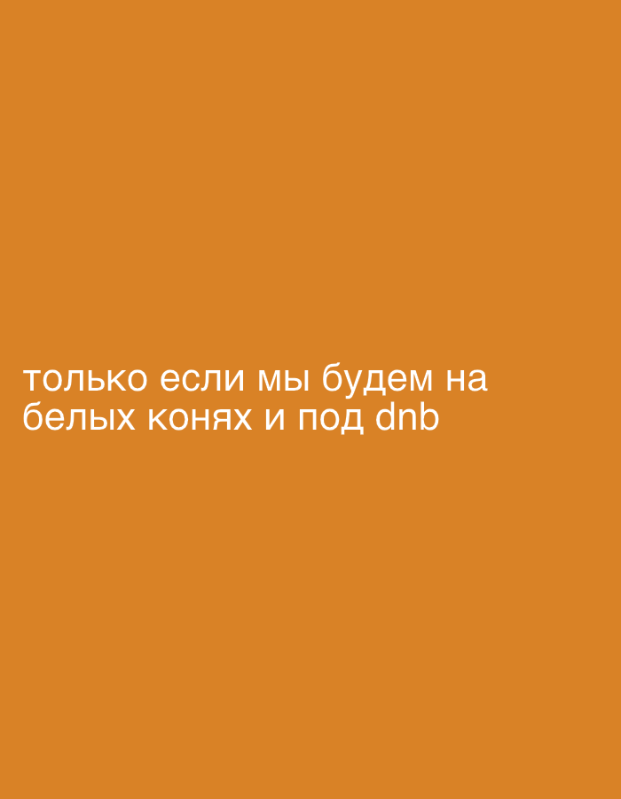 The image is a plain orange background with text written in white. The text, in Russian, reads "только если мы будем на белых конях и под dnb," which translates to "only if we're on white horses and u…read more