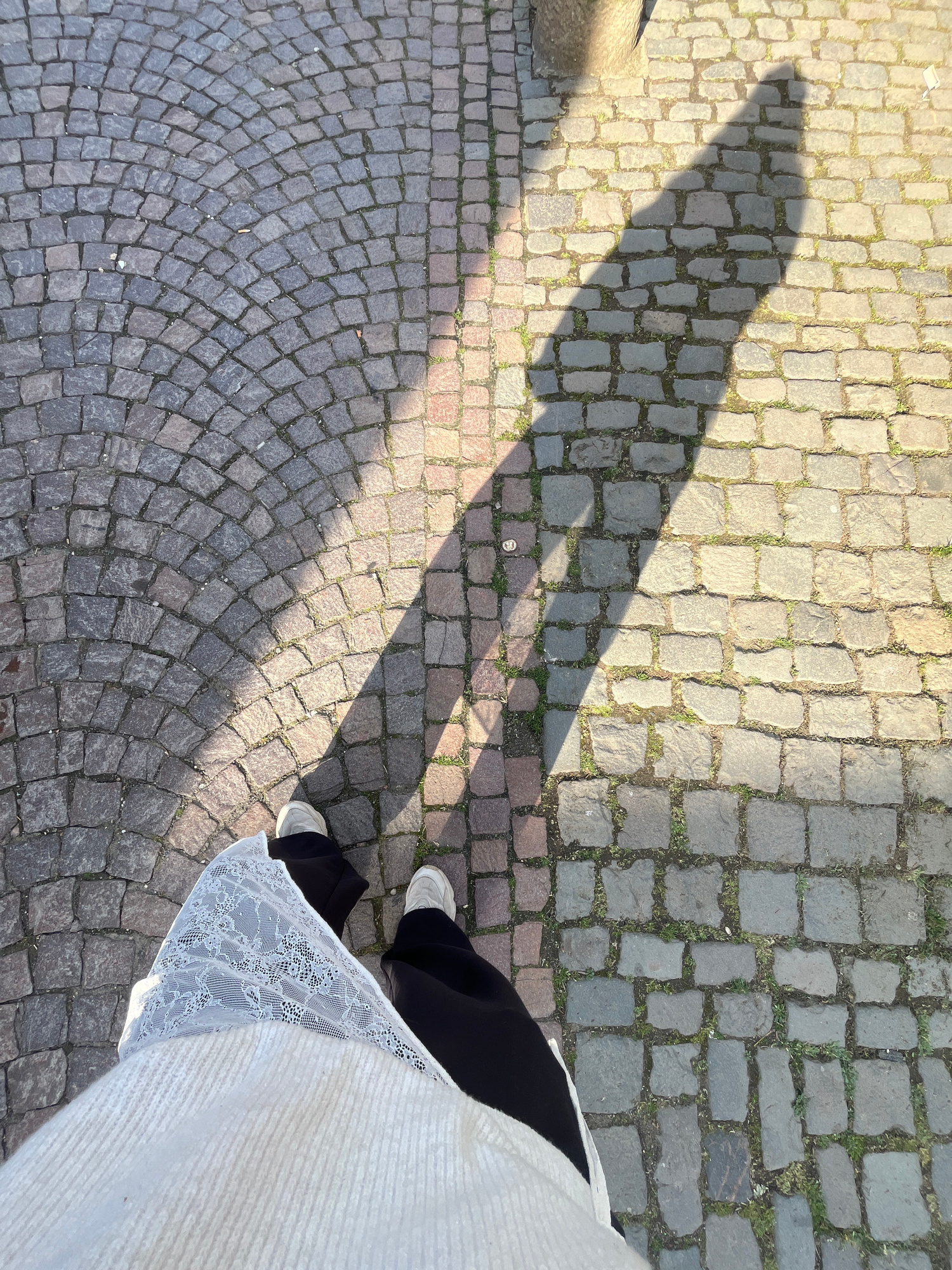 A high-angle, outdoor shot depicts a cobblestone pavement in Meisenheim, Germany. The composition features a transition between two types of cobblestone patterns: one with smaller, square stones arran…read more