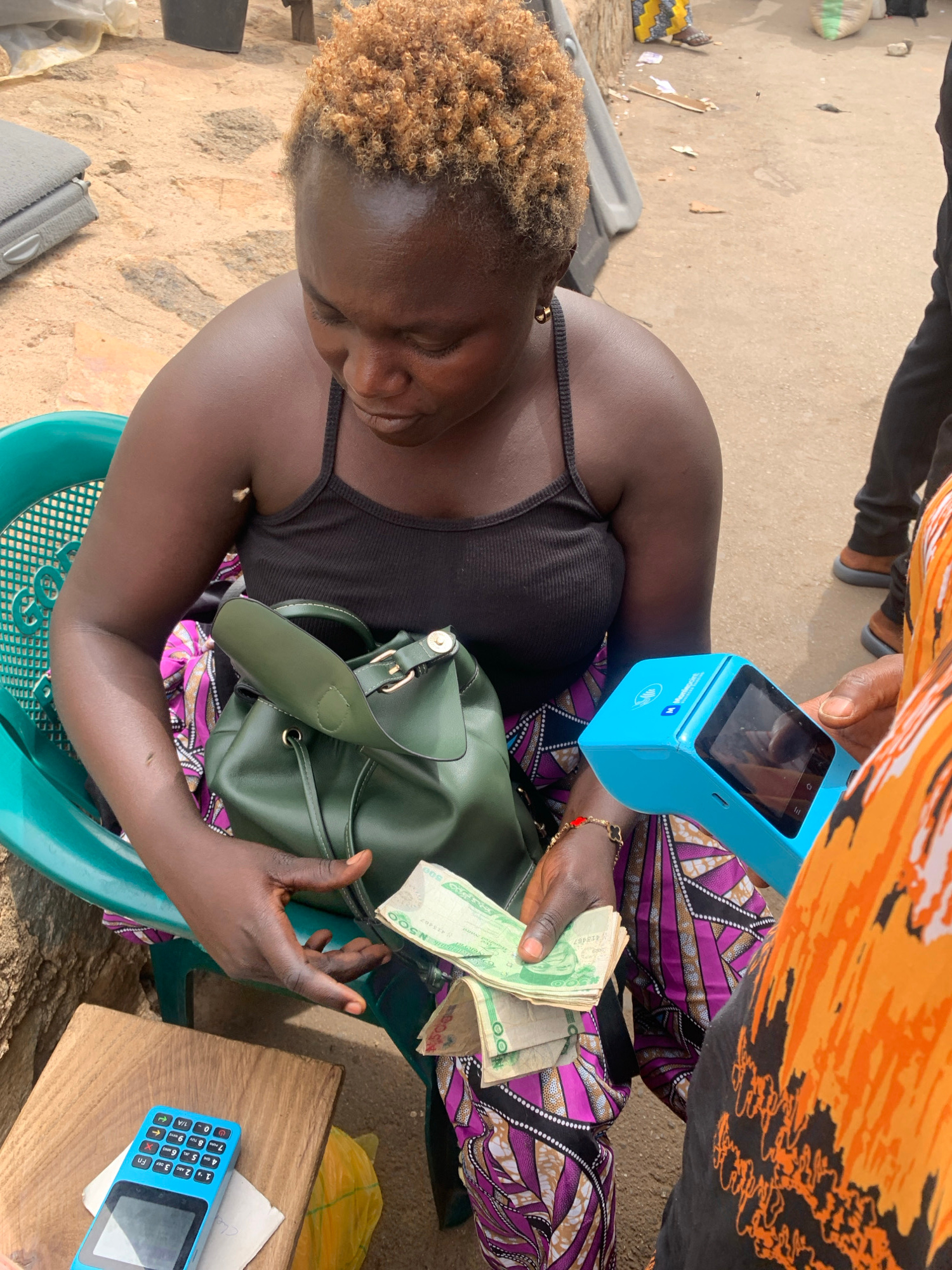 A woman with short, blond-tinged hair is seated outdoors, likely in Bukuru, Nigeria, given the currency and context. She is wearing a black tank top and sitting on a teal plastic chair. She holds a st…read more