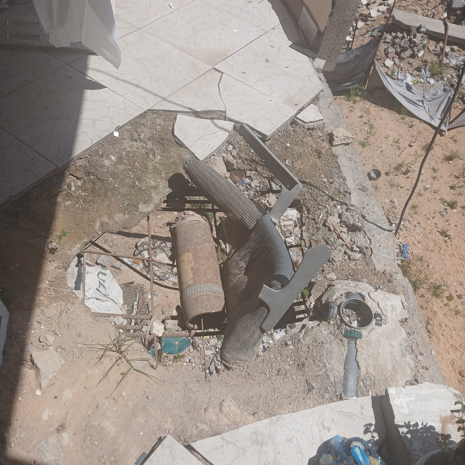 The scene appears to be an outdoor space in disrepair, likely in the city of Gaza, Palestinian Territory, given the visible elements of construction materials and the general environment. The immedia…read more