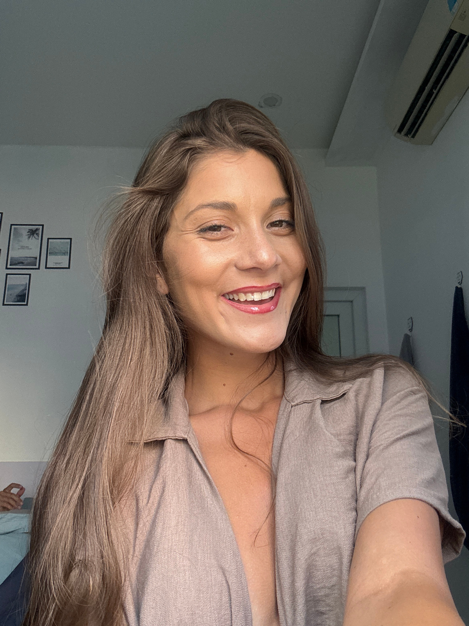 A portrait shows a smiling woman indoors in what appears to be a residential setting. Her long, light brown hair is parted off-center. She wears a beige blouse. Behind her is a white wall with several…read more