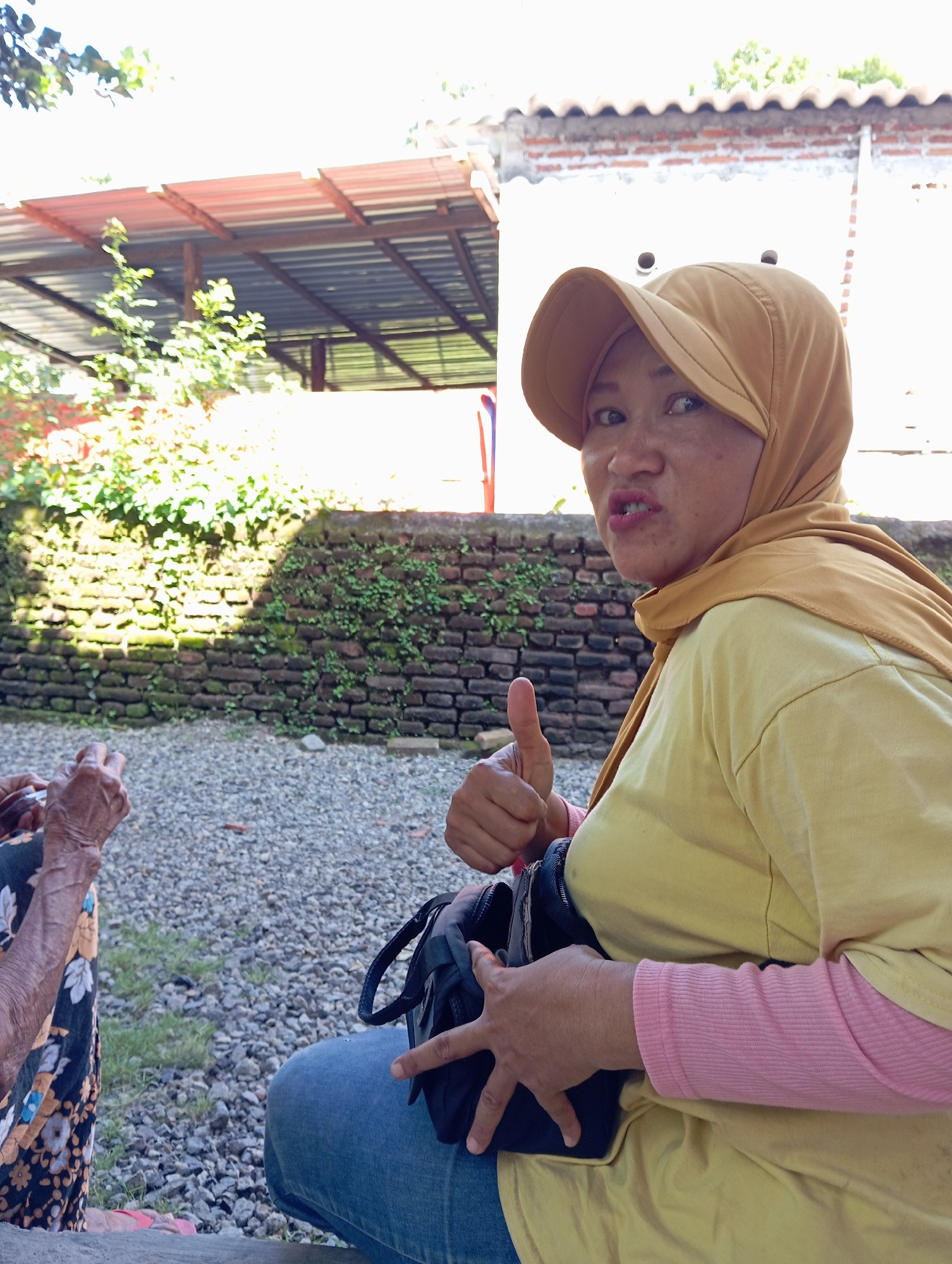 The image, oriented incorrectly and showing a scene rotated 90 degrees counter-clockwise, depicts an outdoor interaction between two individuals in what appears to be Baron, Indonesia. The primary su…read more