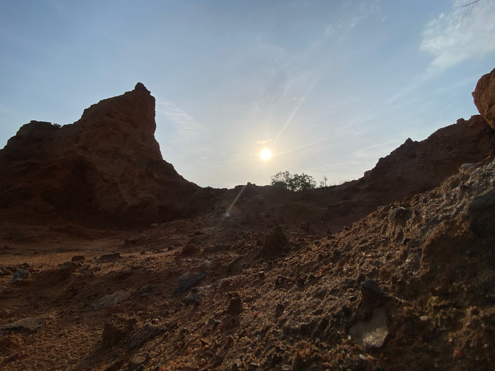 This media file captures a dramatic low-angle landscape in what appears to be an arid or semi-arid region, specifically identified as Achara, Nigeria. The scene is dominated by rugged, eroded terrain…read more