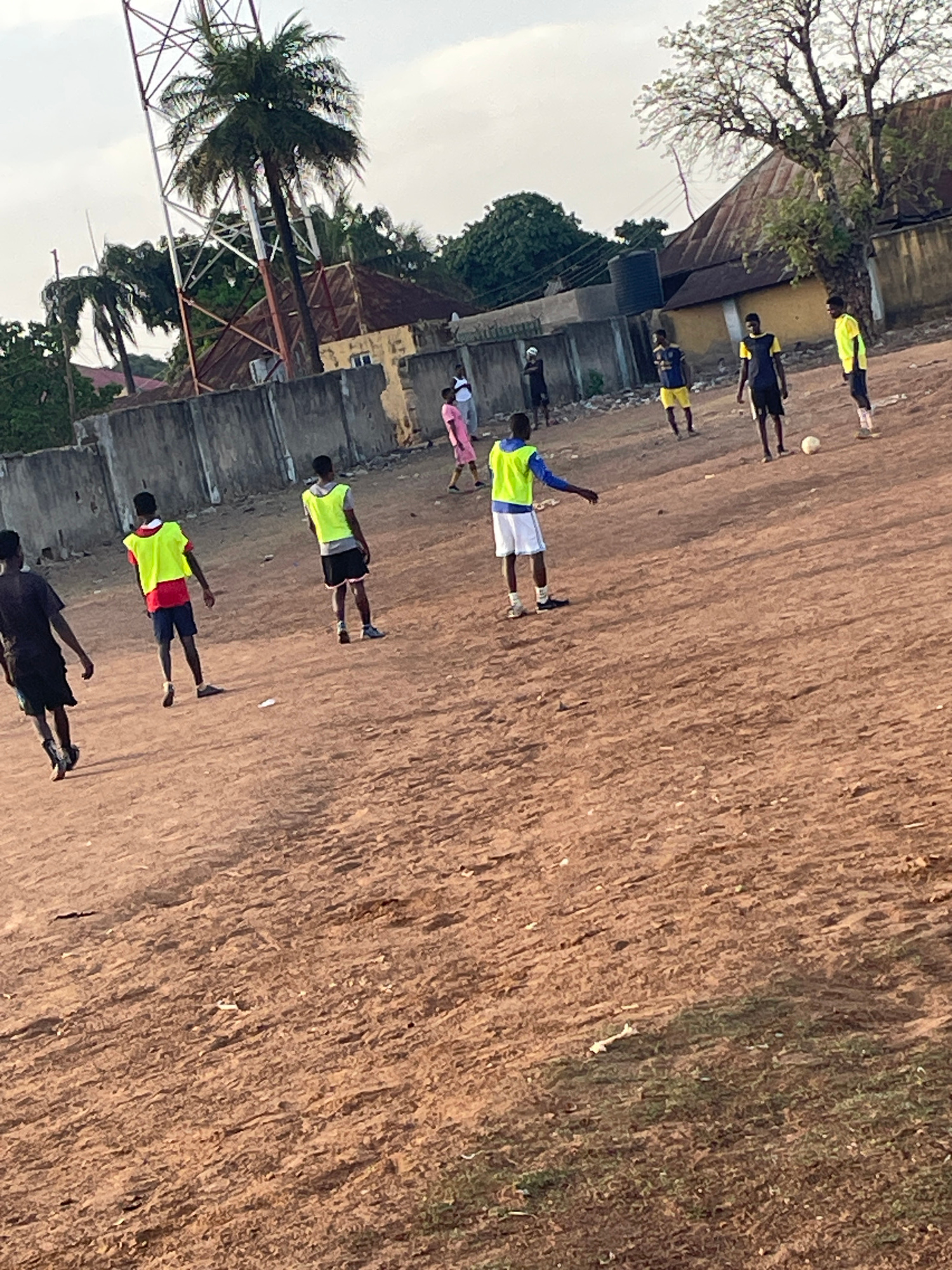 A photo taken in Akwanga, Nigeria shows several people training on a dirt field next to a fenced-off residential area. Some people are wearing yellow-green vests and are spaced out along the field. On…read more