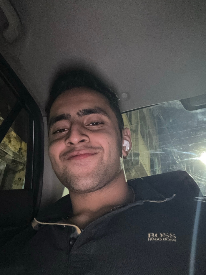 An image taken at night depicts a young adult male, appearing to be of South Asian descent, seated within a vehicle in Kolkata, India. The subject, positioned centrally and looking directly at the cam…read more