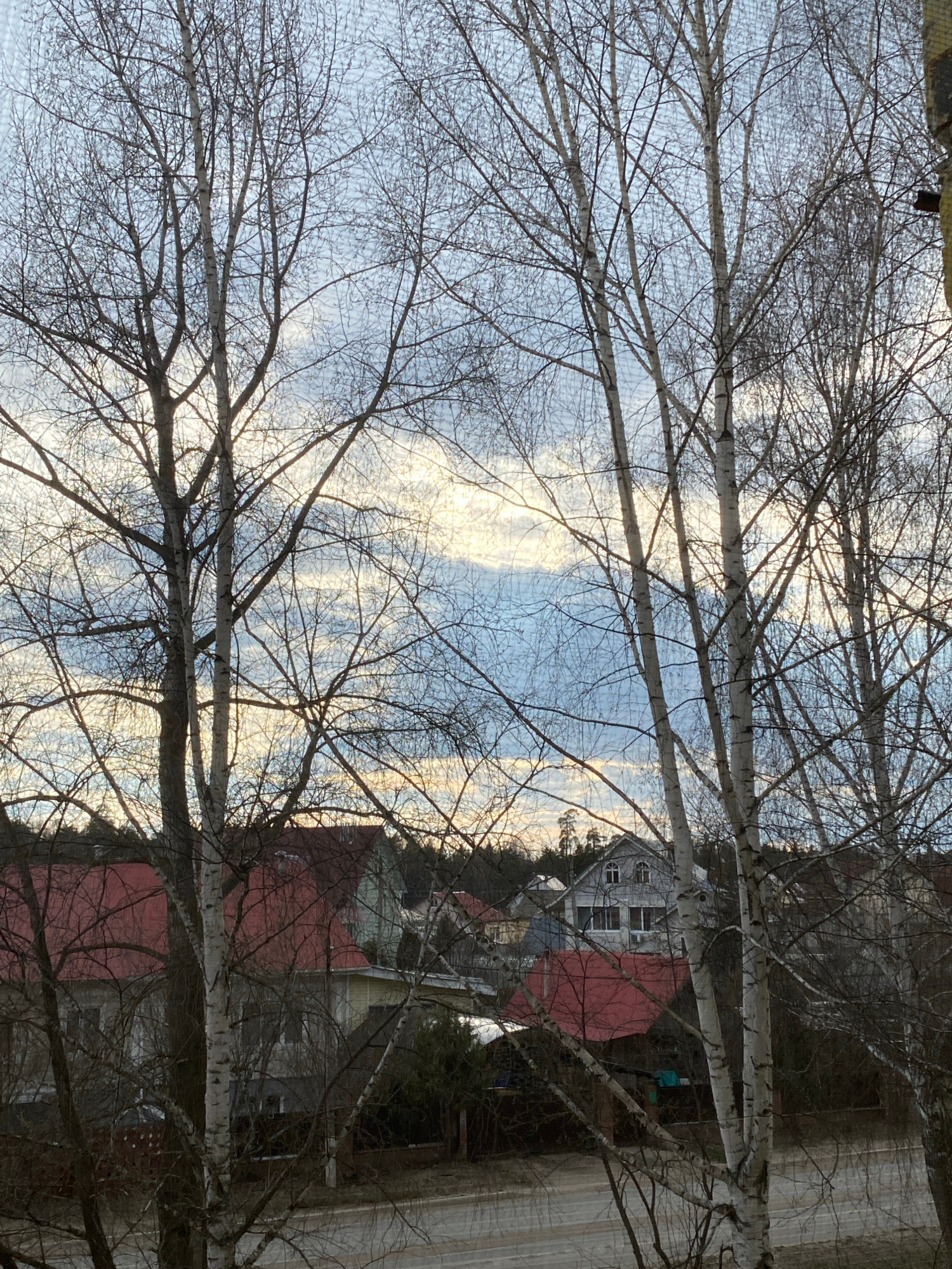 This image, taken in Noviy, Russia, presents an outdoor scene dominated by the intricate patterns of bare tree branches against a cloudy sky. The foreground is densely packed with the dark, leafless b…read more