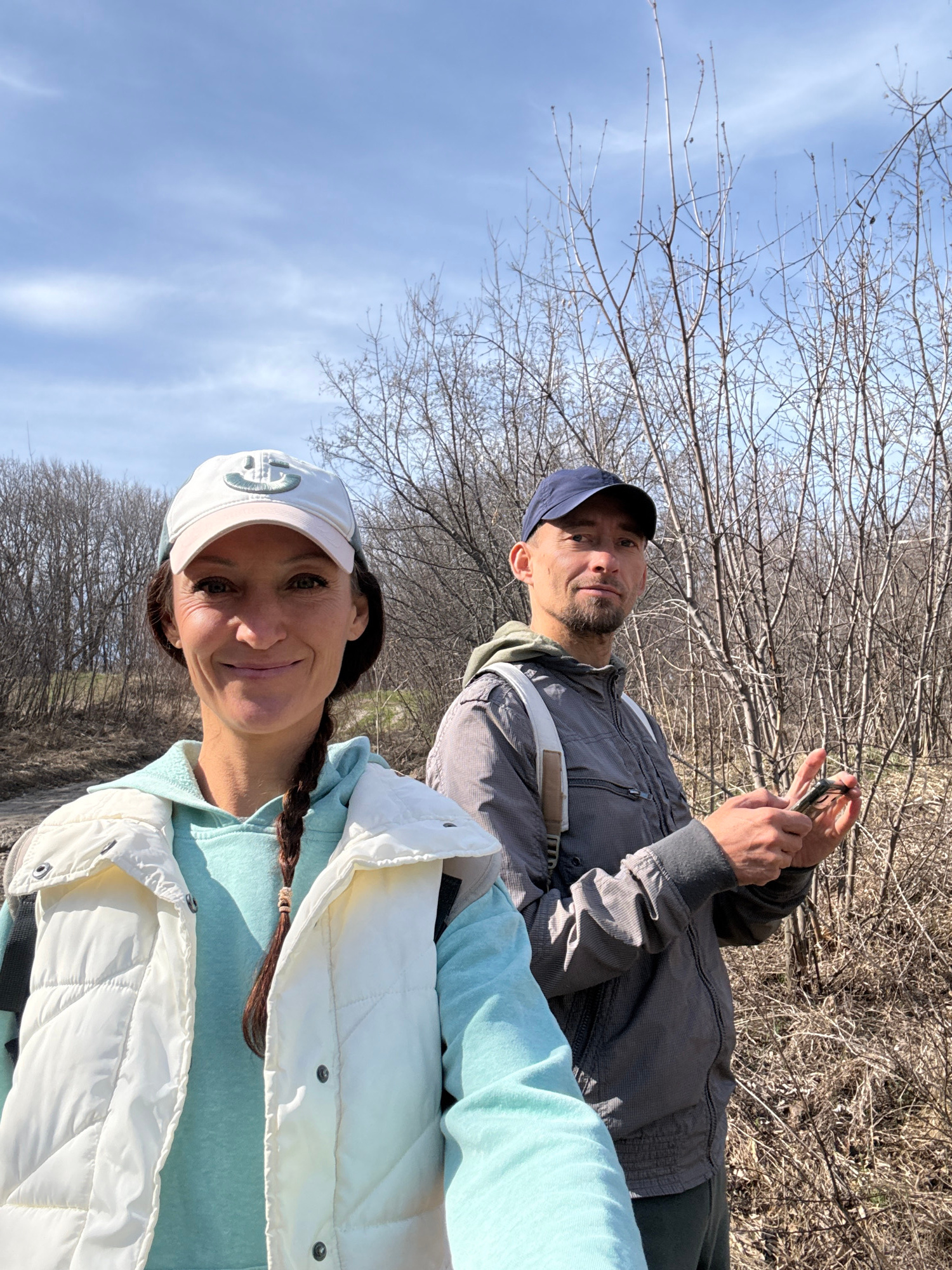 This media file captures two individuals outdoors in Ulyanovsk, Russia, against a backdrop of bare trees and a clear blue sky. The image is rotated, presenting the subjects as if lying down, but they…read more