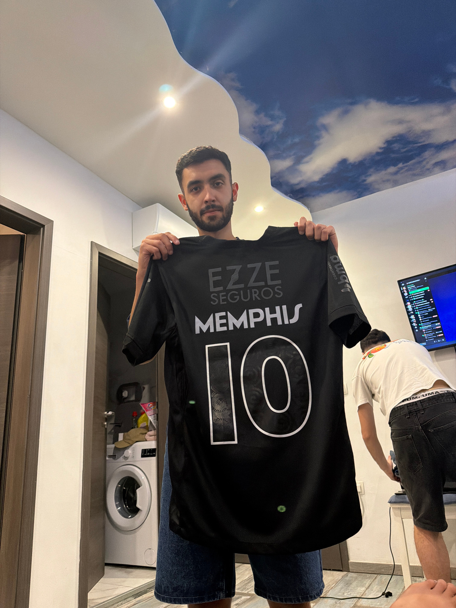 This image, taken indoors in Grad Rijeka, Croatia, is oriented vertically but depicts a scene from a low angle looking upwards. In the foreground, a man with a beard and dark hair holds up a black t-sā¦read more