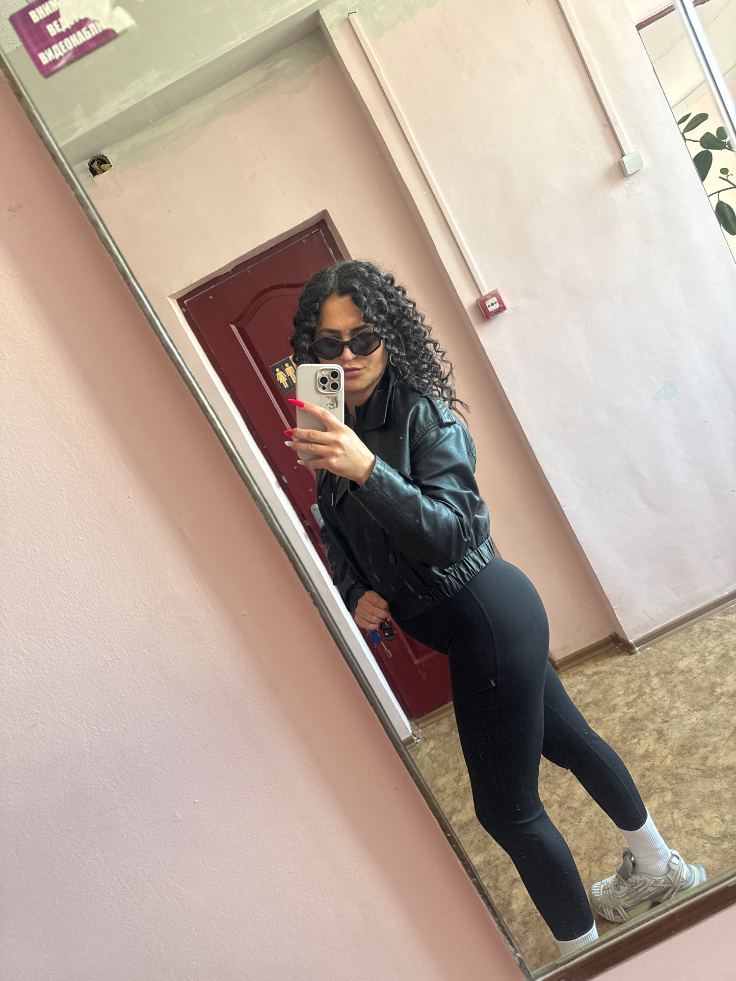 A young person is captured in a full-body mirror selfie, appearing to be in an indoor corridor or hallway in Chaikovsky, Russia. The image is tilted counter-clockwise, suggesting the person was holdin…read more