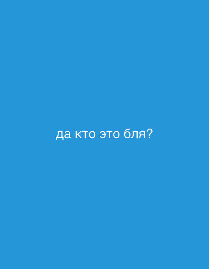 A solid light blue background displays the Russian text "да кто это бля?". The text, in white, is centrally positioned and slightly tilted, creating a simple yet direct visual statement. The use of co…read more