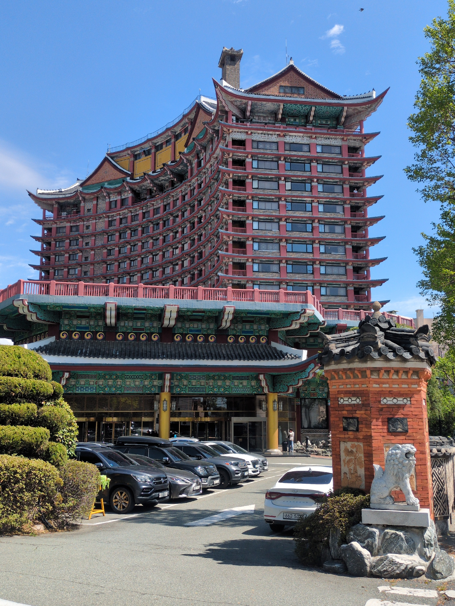 The image depicts the Haedong Yonggungsa Temple in Busan, South Korea. The temple is a multi-story building with a distinctive design incorporating traditional Korean architectural elements, such as c…read more