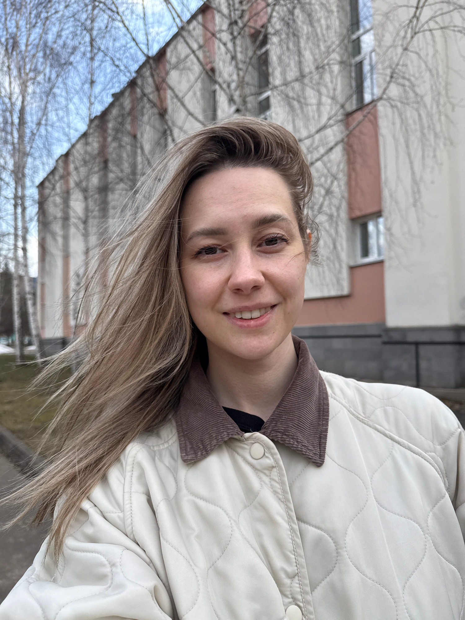 A young woman is depicted in a close-up outdoor portrait, smiling warmly at the camera. She has long, straight, light brown hair that cascades over her shoulders and down her front. Her eyes are dark,…read more