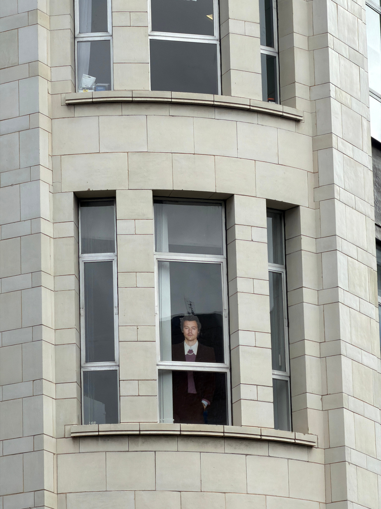 A medium, straight-on shot shows part of a light gray building exterior with rectangular stones, some of which are layered in a staggered fashion. On the side are long, vertically grooved bars. The bu…read more