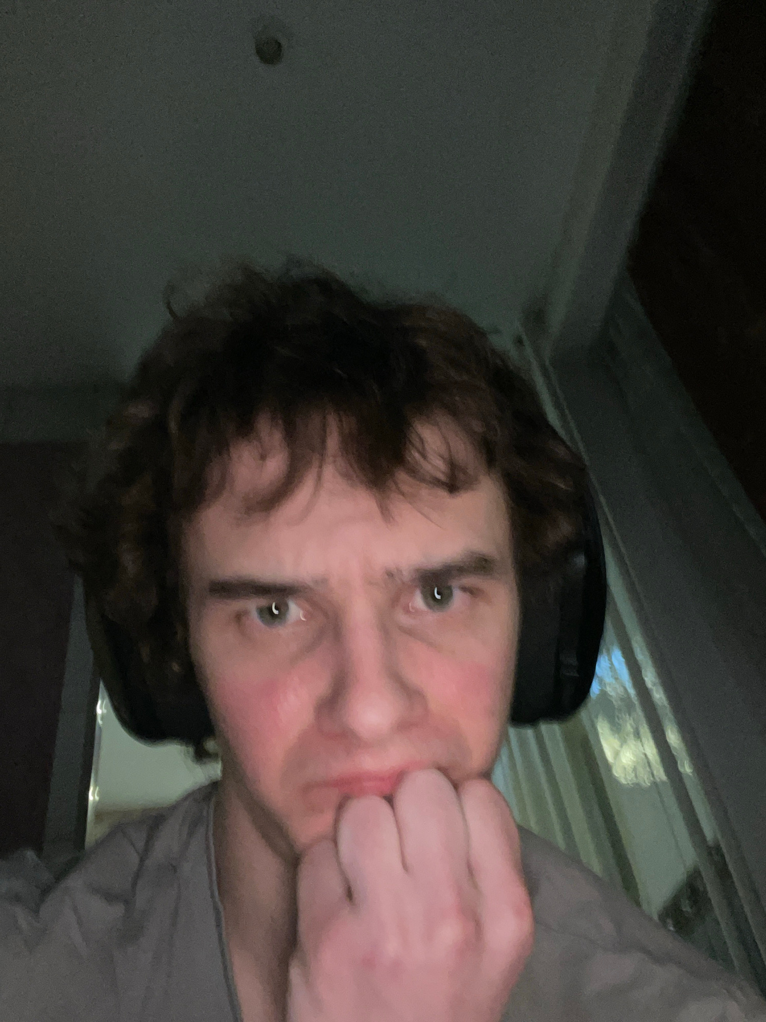 A man with brown hair and headphones is holding his fist to his mouth, looking directly at the camera. The scene is indoors. It is not possible to determine if this image was taken in Krasnoyarsk, Rus…read more