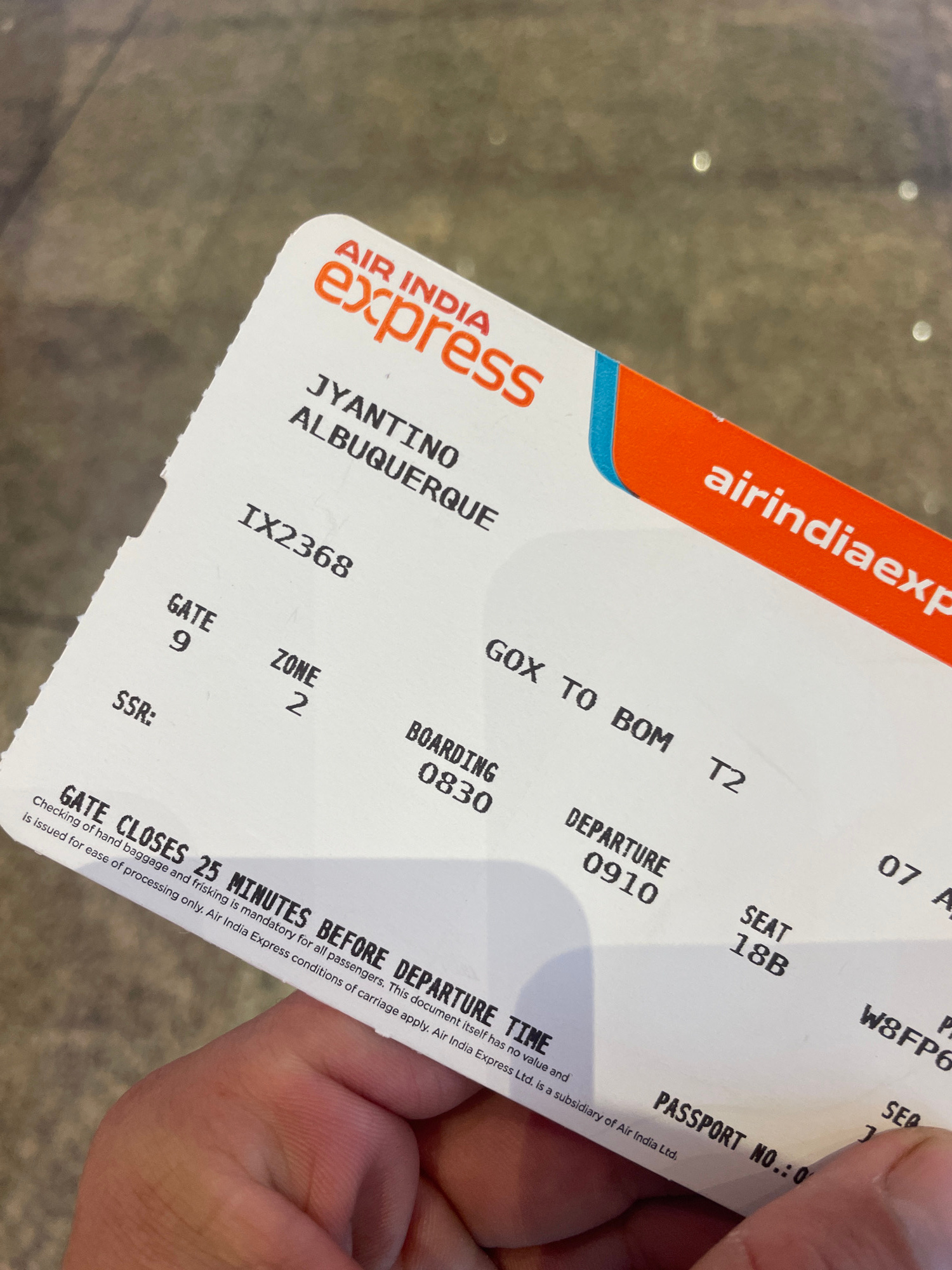 The image shows a close-up of an Air India Express boarding pass. The pass is primarily white with orange and blue accents for the airline's logo and branding. The text on the pass includes the passen…read more