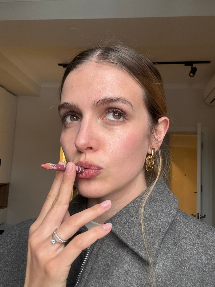 A female subject is depicted from the chest up in an indoor setting in the city of Unknown, Unknown. She has light brown hair, light brown eyes, and is wearing a grey zippered jacket. On her right ear…read more