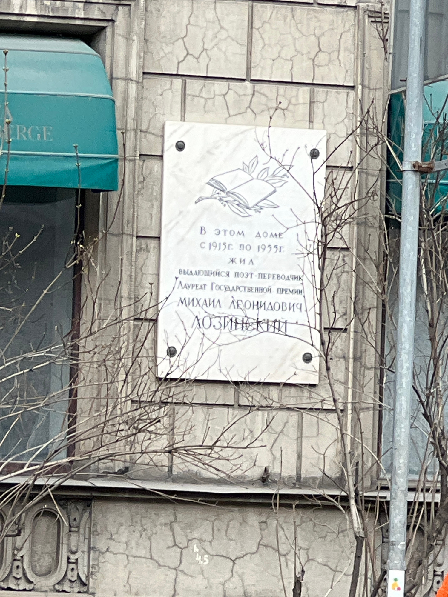 The image shows a plaque on a building, likely in Saint Petersburg, Russia. The plaque is dedicated to the poet and translator Mikhail Leonidovich Lozinsky, who lived in the building from 1915 to 1955β¦read more