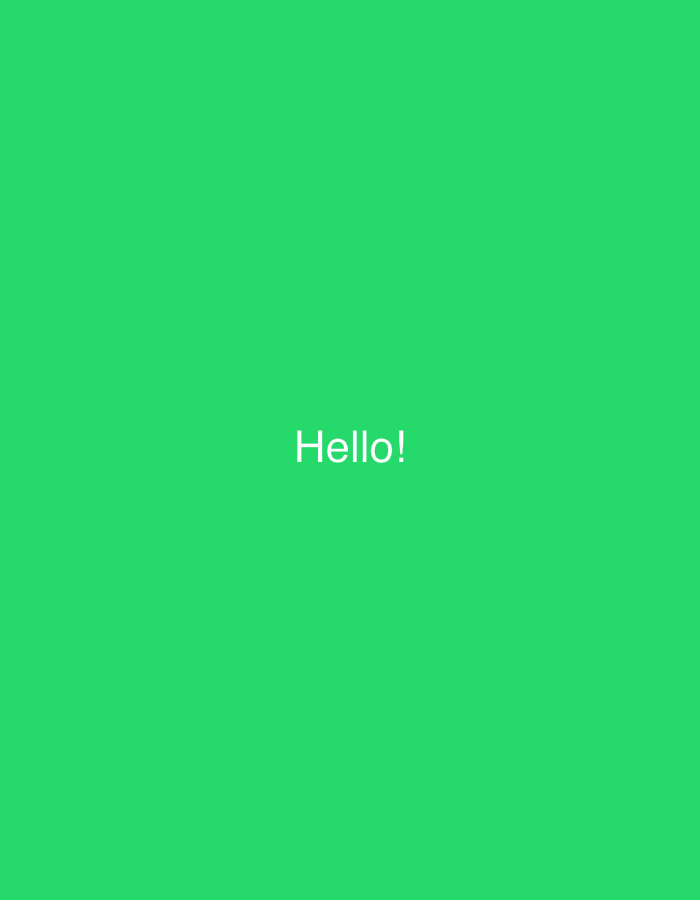 The image displays a solid, uniform green background. Centered horizontally and vertically on this background, the word "Hello!" is rendered in white, sans-serif text. No people, objects other than th…read more