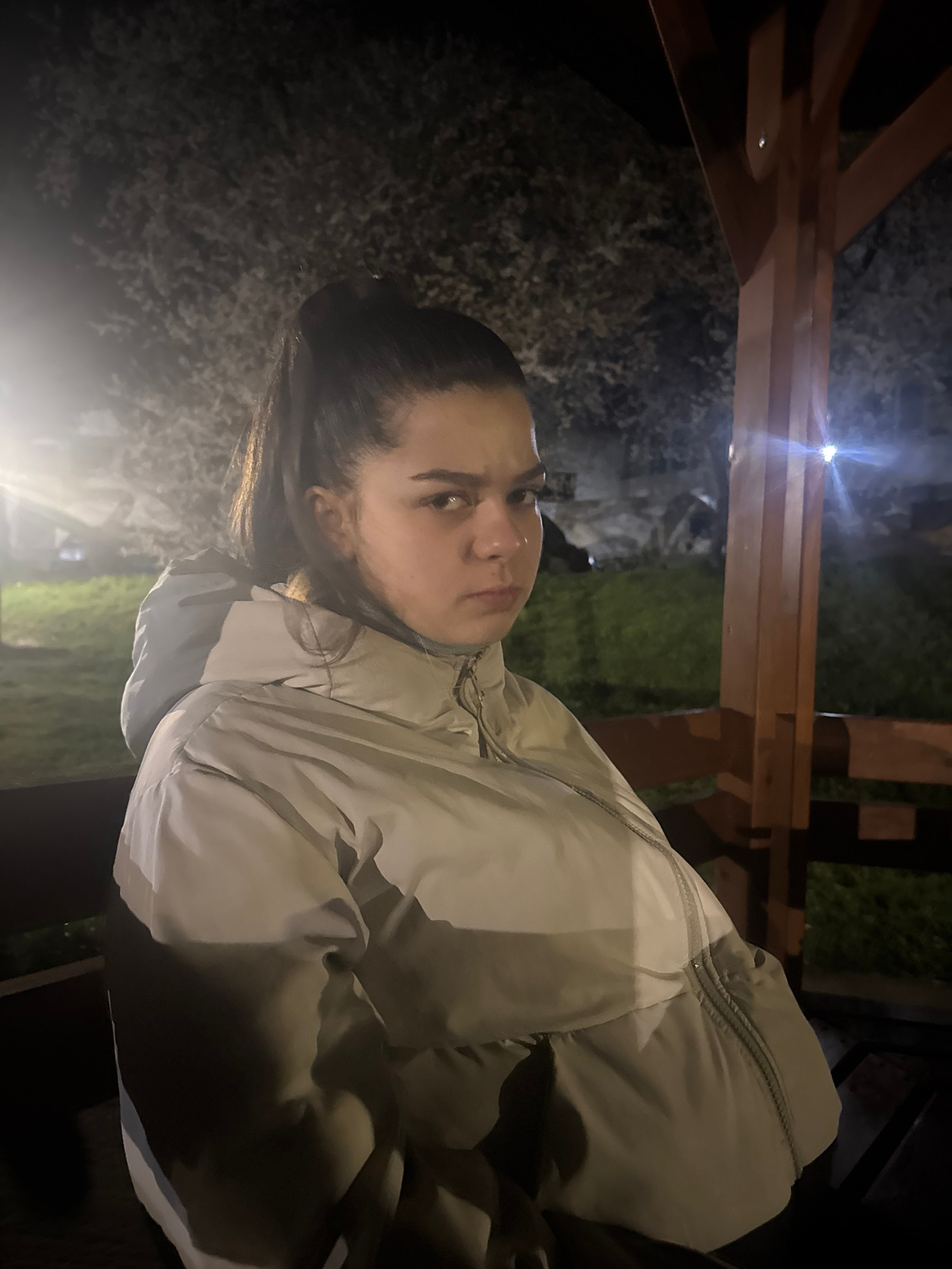 A woman with dark hair and an olive complexion is visible in the image, wearing a light-colored, quilted jacket. She is situated outdoors, likely at night, judging by the low lighting conditions. Theβ¦read more