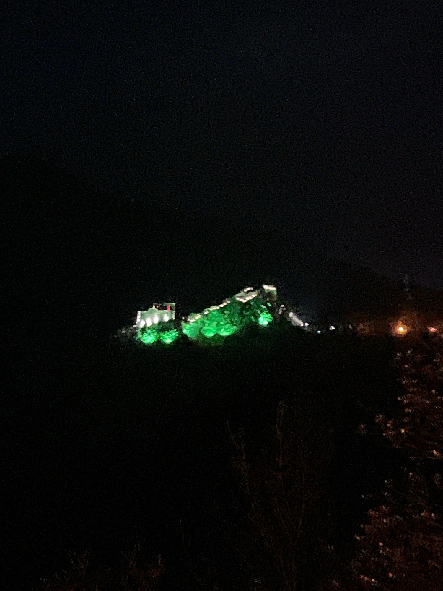 The image shows a night scene on the Asenitsa River in Asenovgrad, Bulgaria. A single light source is reflected on the water's surface, creating a trail of diminishing reflections. Further down the ri…read more